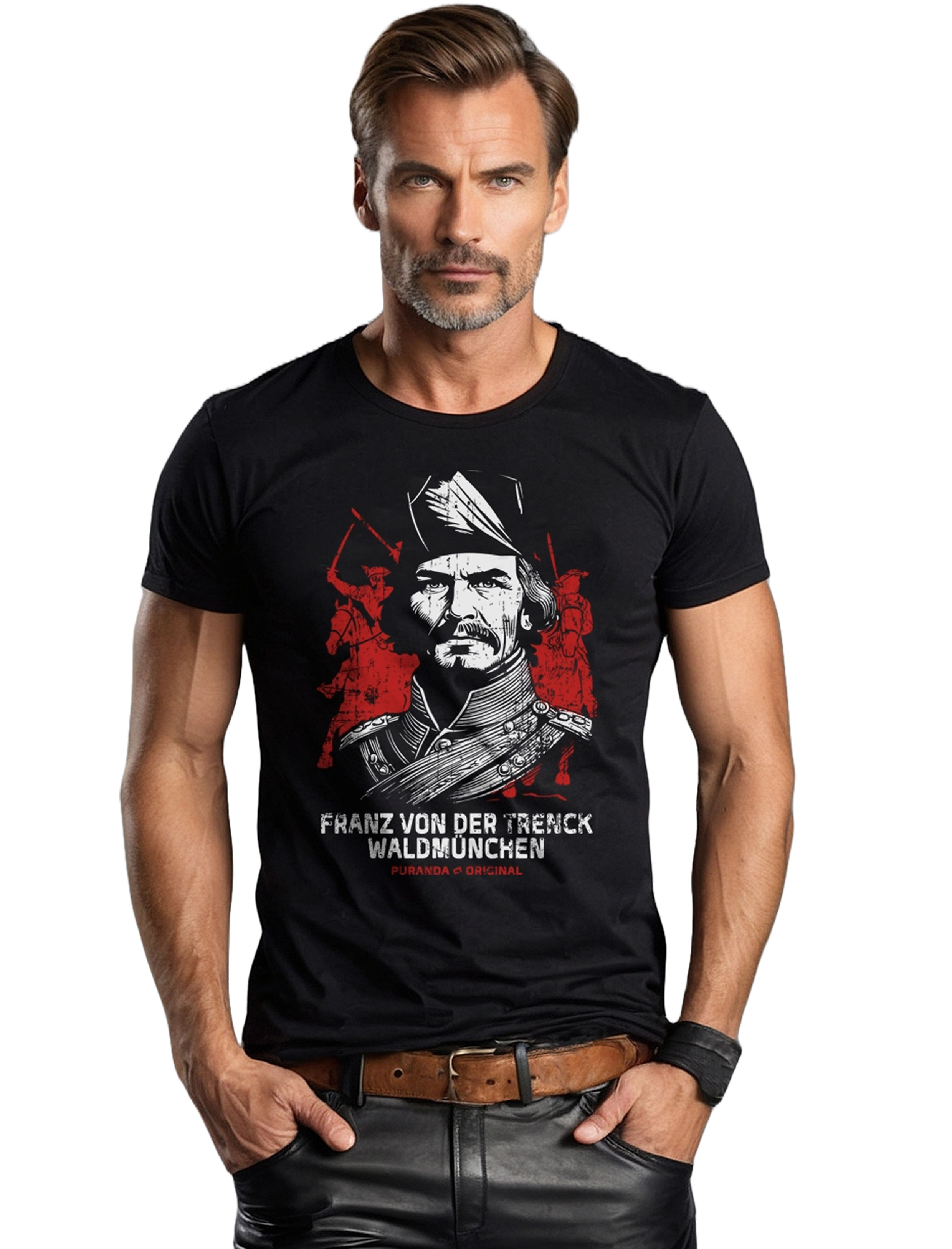 Franz von der Trenck war ein berüchtigter Anführer und Abenteurer im 18. Jahrhundert, der für seinen Mut und seine unkonventionellen Taktiken bekannt war. Hol dir ein Stück Geschichte und zeige deinen rebellischen Geist mit diesem außergewöhnlichen T-Shirt.